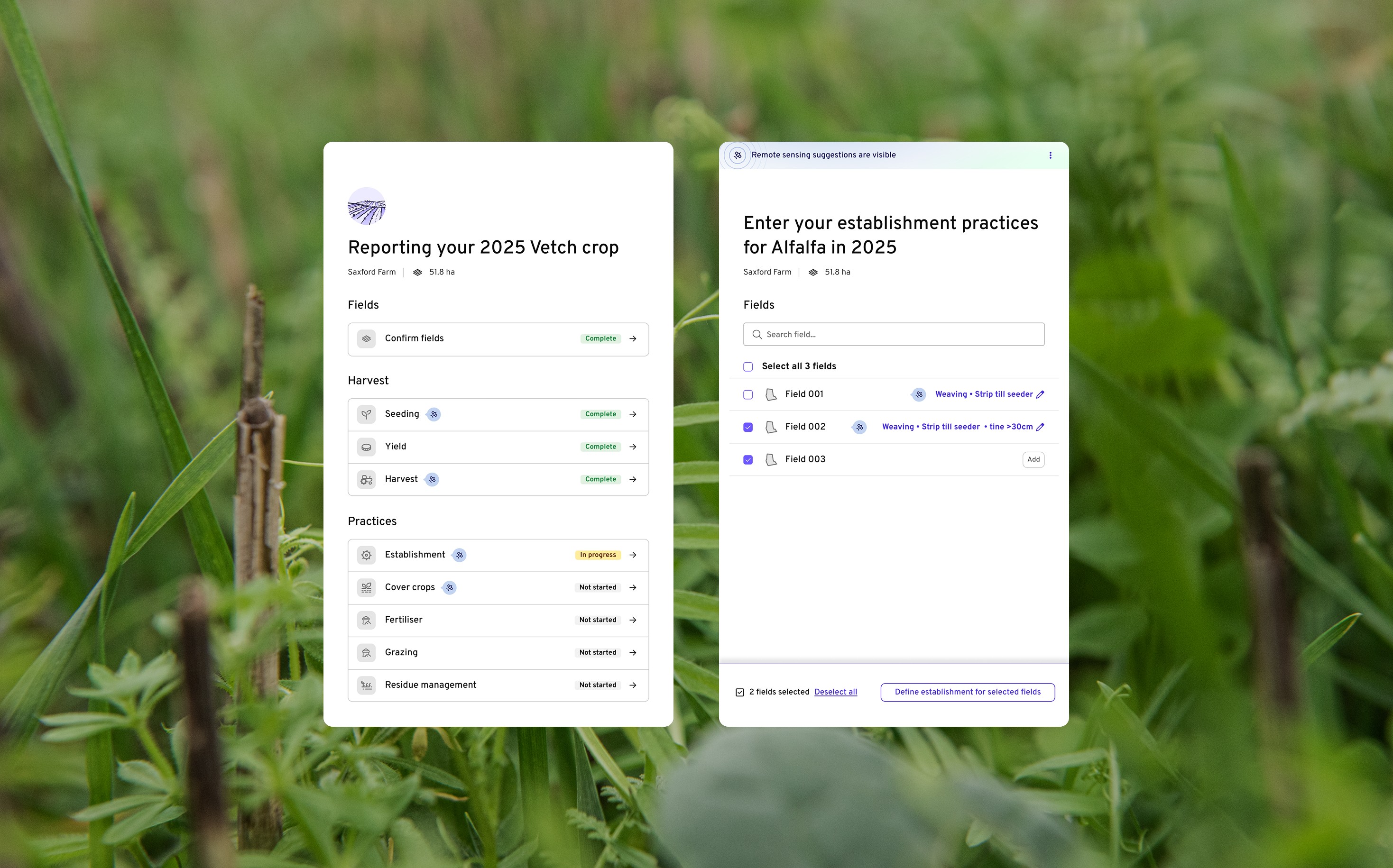 Onboarding: What previously required weeks of back-and-forth—explaining requirements, troubleshooting uploads—now takes less than 3 minutes. Farmers self-onboard with an intuitive interface tailored to their operation size.